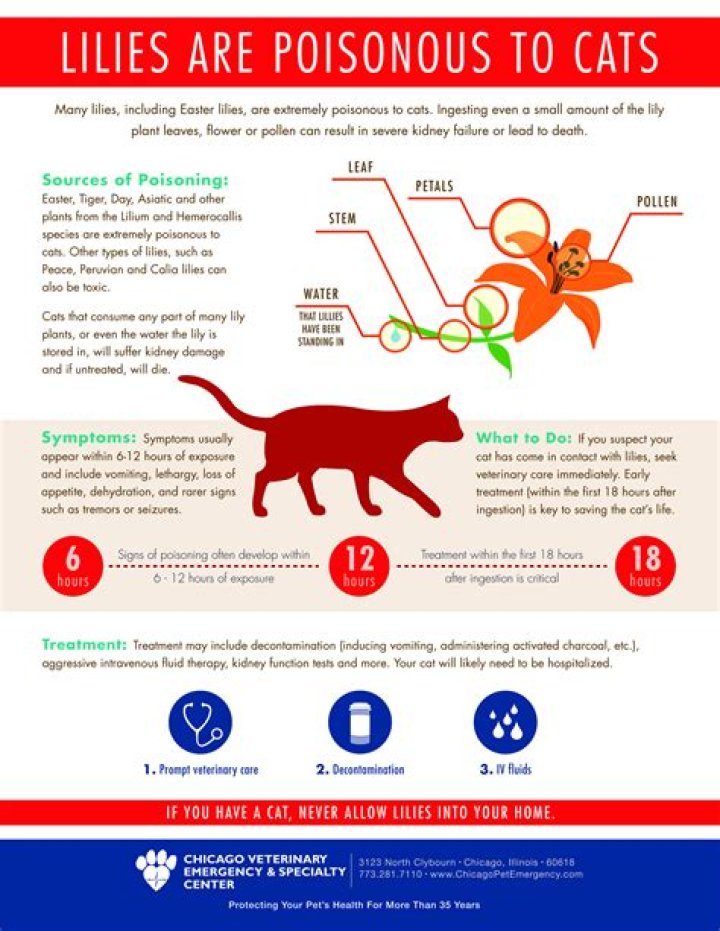 Cats who are treated within 18 hours of exposure to a toxic lily generally recover. However, in cases where treatment is delayed, the prognosis is generally poor and most cats are euthanized.How do you get lily pollen off a cat?