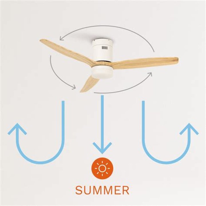 During summer months, your ceiling fan blades should be set to spin counterclockwise. When your ceiling fan spins quickly in this direction, it pushes air down and creates a cool breeze. This helps keep a room's temperature consistent throughout the day and reduces the need for an air conditioner to run constantly.Why does the direction of the fan matter?