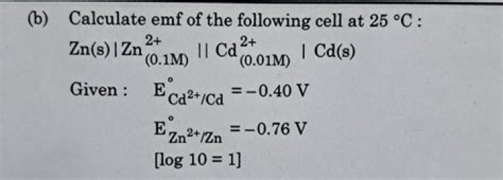 Solution. Thus, the emf of the cell at 25 ºC is 0.73 V.