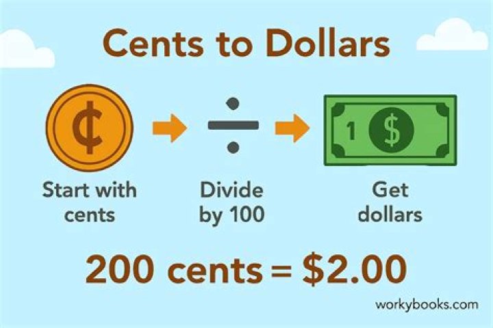 Dollars and CentsOne cent is equal to 1/100th of a dollar. In other words, each dollar is worth 100 cents.