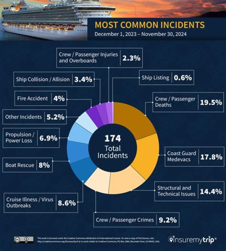The most passenger deaths occurred on Carnival Cruise Lines (29%), Royal Caribbean Cruises (12%), and Norwegian Cruise Line (10%). The highest crew member deaths occurred on Carnival Cruise Line (19%) and Royal Caribbean Cruises (19%).Has anyone ever survived falling off a cruise ship?