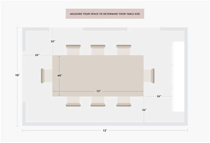 While recommendations vary, a clearance of 36 to 42 inches from table edge to a wall or other furniture allows adequate space for seating plus a walkway behind the diners. Using this guideline, a dining room 10-by-12-feet long accommodates a table 36 to 42 inches wide and 60 to 72 inches long.How tall should chairs be for a 42 inch table?
