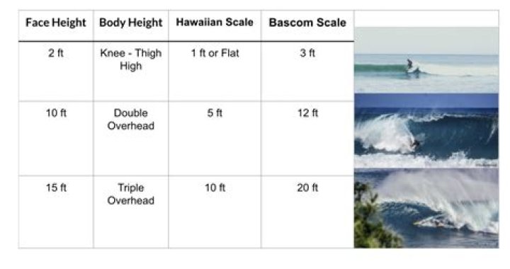 Wave SizesIn scientific terms and most used by the surfing community around the world, the wave height is measured vertically from the trough to the crest and is known by surfers as face scale. In Hawaii, local surfers use the back of the wave to measure wave height and is called Hawaiian scale or local scale.