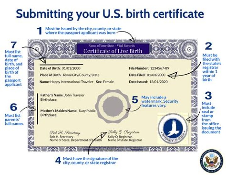 - Birth certificate showing birth in the United States;