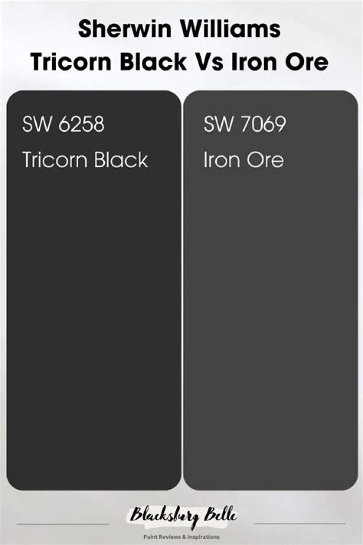 SW Tricorn Black lives in the neutral paint family and is a darker shade of black than Iron Ore and Black Fox. This color is a true black with no strong undertones (if you want true black shutters, this is a good choice). Used frequently on exterior doors, window trim, furniture, and statement walls.What color looks good with Iron Ore?