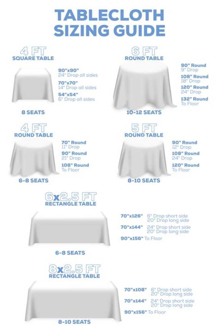 Traditionally, a half drop is acceptable for casual occasions. This means that the tablecloth will hang halfway to the floor. However, even though a half drop saves money, your tablecloth should touch the floor on formal occasions. This is because a full drop will cover the legs of your tables, chairs, and guests.5 stylish + functional tablecloth alternatives