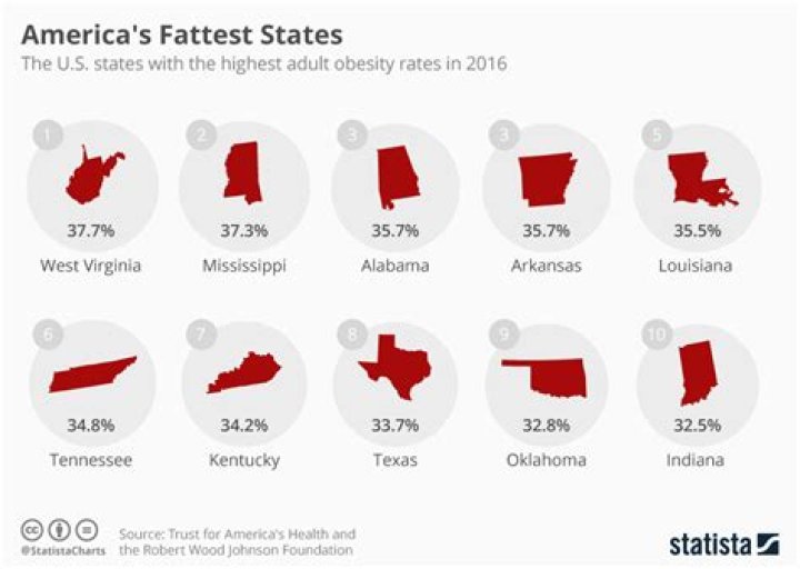 Here are the 10 states with the highest rates of obesity: