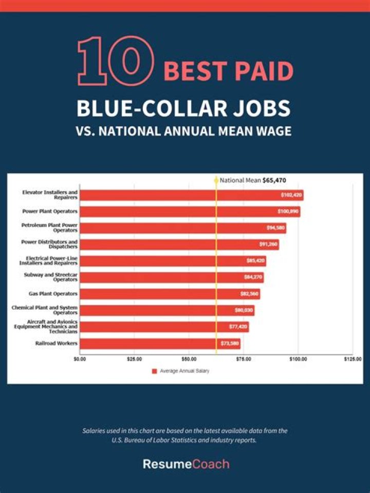 Using data from May 2021, the most recent period available, we found 30 traditionally blue-collar jobs with high median annual earnings. All of the jobs on the above list earned more than $60,000 in 2021, more than the overall median annual wage of $45,760. Some of the jobs are operators and first-line supervisors.Who gets paid more white or blue-collar?