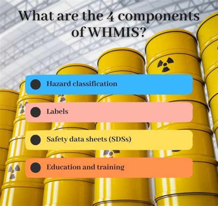 What are the main parts of WHMIS? The main components of WHMIS are hazard identification and product classification, labelling, safety data sheets, and worker education and training.