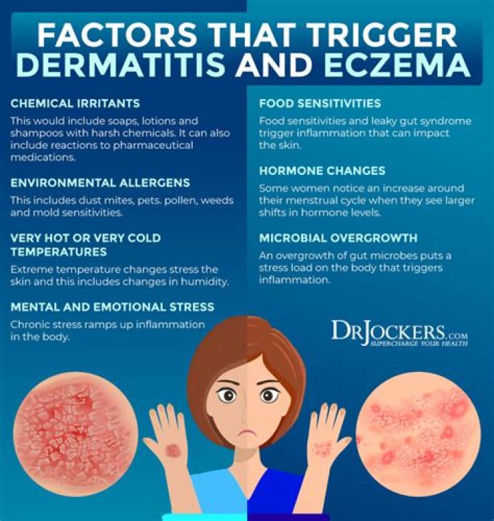 Common triggers include: irritants – such as soaps and detergents, including shampoo, washing-up liquid and bubble bath. environmental factors or allergens – such as cold and dry weather, dampness, and more specific things such as house dust mites, pet fur, pollen and moulds.How do you find out what is causing my eczema?