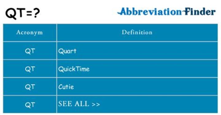 In slang, QT can mean cutie. Go ahead, try to say QT. It almost sounds just like cutie, an informal term for a cute person. QT also an abbreviation of quiet.What does QT mean on social media?