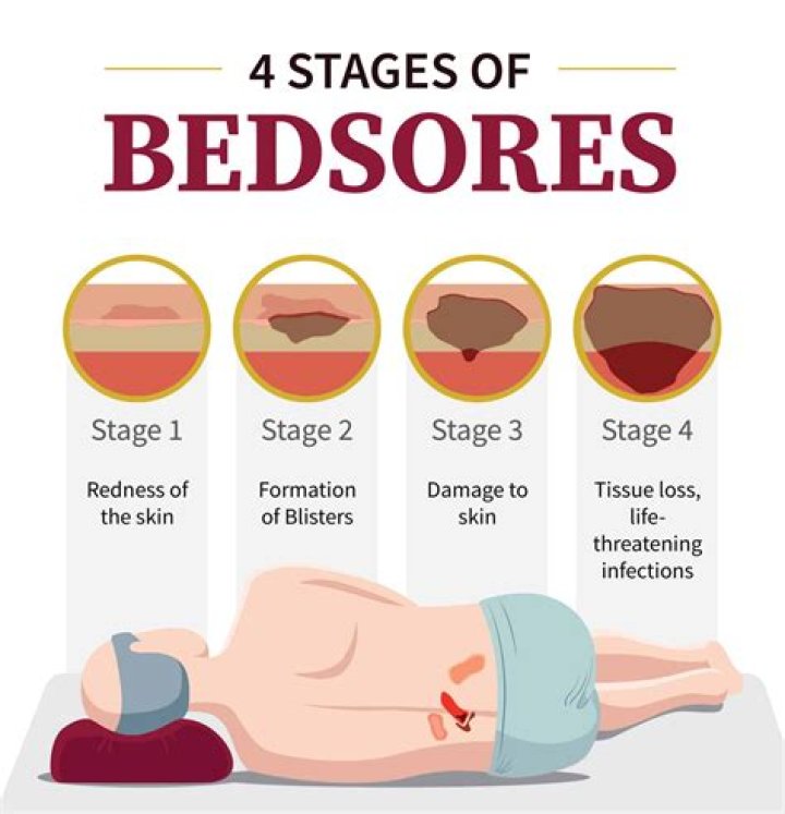 Stage 4 bedsores look like deep holes or craters in your skin. The skin around the opening of the bedsore may be reddish and inflamed. Blackened, dead skin may also be present near the affected area. You may see muscles or tendons inside the bedsore.Can pressure sores cause death?