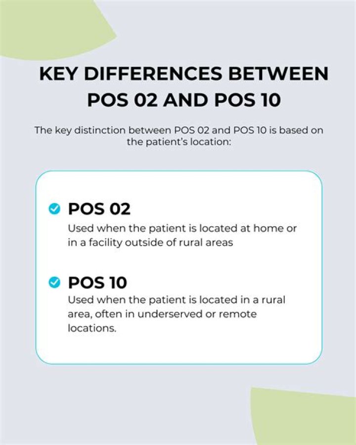 The new POS code is POS code “10” and is for telehealth services provided to a patient who is in their home. The revision to the existing POS code was to POS code “02” for telehealth services provided to a patient outside their home.What does place of service code 10 mean?