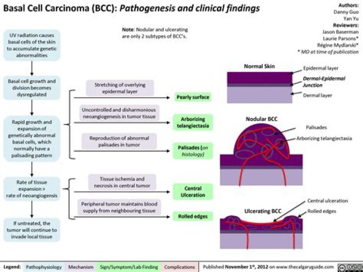 Basal cell carcinoma is a cancer that grows on parts of your skin that get a lot of sun. It's natural to feel worried when your doctor tells you that you have it, but keep in mind that it's the least risky type of skin cancer. As long as you catch it early, you can be cured.What does basal cell carcinoma look like when it starts?