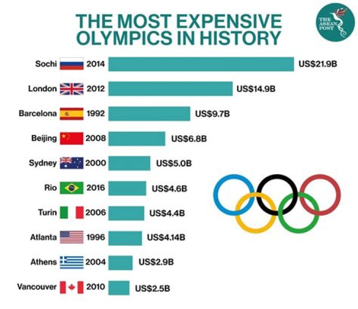 The most expensive Summer Games to date are London 2012 at USD 15.0 billion and Barcelona 1992 at USD 9.7 billion. For the Winter Games, Sochi 2014 is the most costly at USD 21.9 billion; Torino 2006 is the second-most costly at USD 4.4 billion.