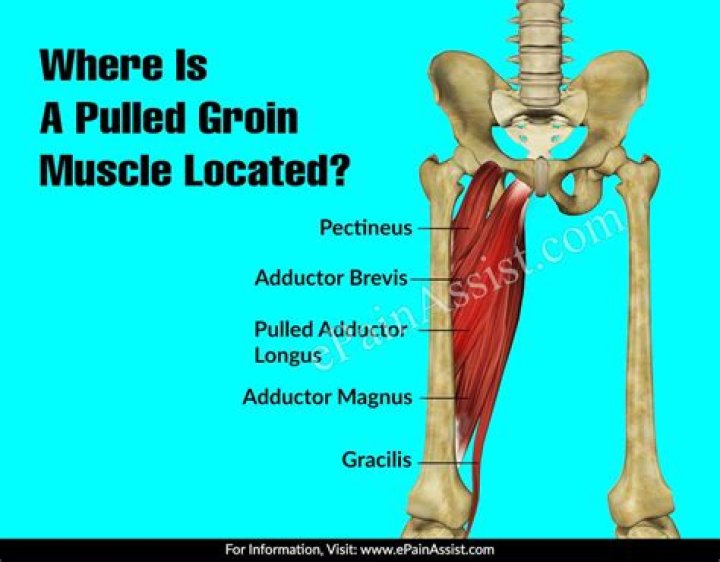 Where is a pulled groin muscle located?