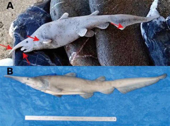 Mitsukurina owstoni, the living Goblin Shark, or Elfin Shark, is a very rare shark to catch. Less than 50 specimens have been officially recorded and described, although in a rare event, over 100 were caught in 2003 off the coast of Taiwan. Many of the described specimens come from Japan.Can sharks be blue?