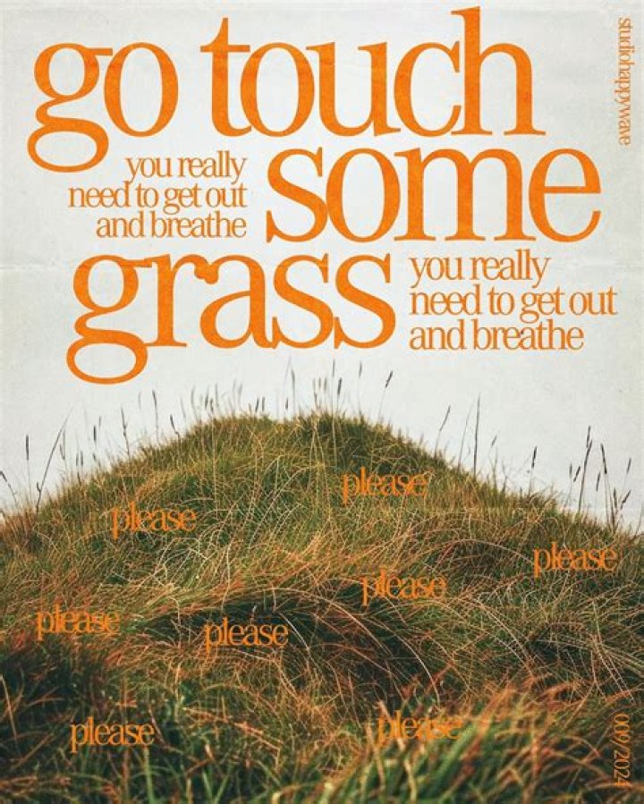 Touch grass is used on the Internet to tell someone to go outside. The phrase also implies that the person the insult is directed to spends too much time online, and they physically need to get outside and “touch some grass” to reconnect with the real world.